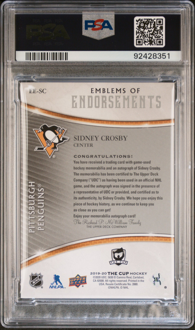 2019 UD The Cup Emblems Of Endorsements Sidney Crosby PATCH AUTO /15 #EESC PSA 8