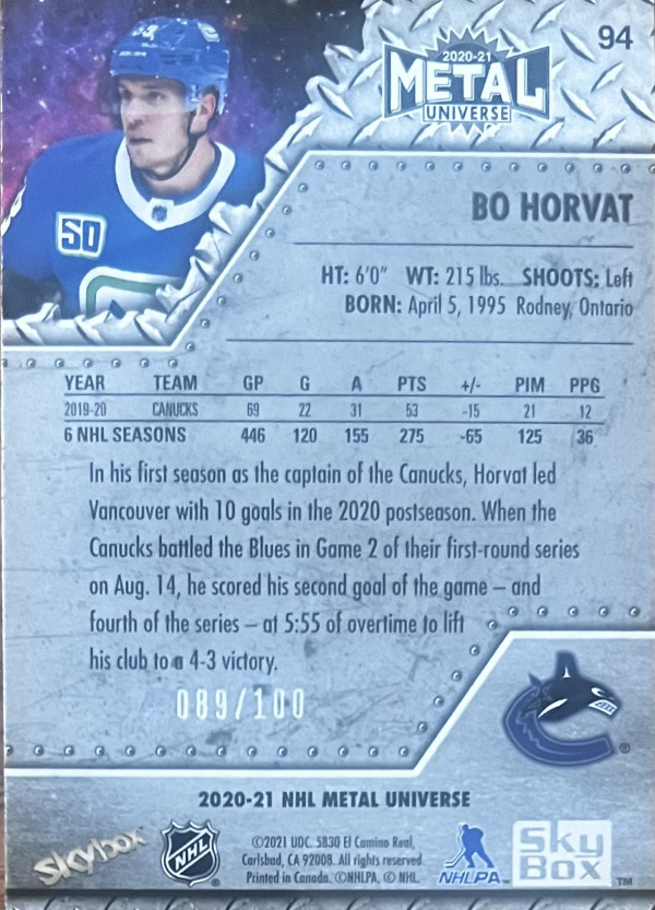 2020-21 Metal Universe PMG Red /100, Bo Horvat