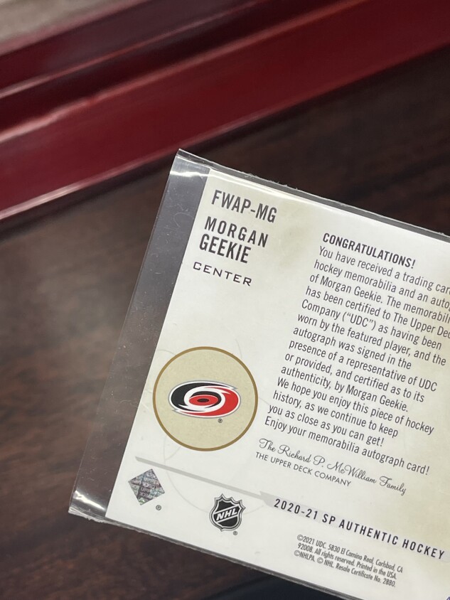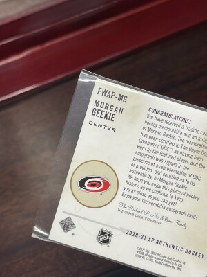 2020-21 SP Authentic Morgan Geekie Future Watch Auto 078 /100 FWAP SPA Limited Rookie Autograph Patch RC