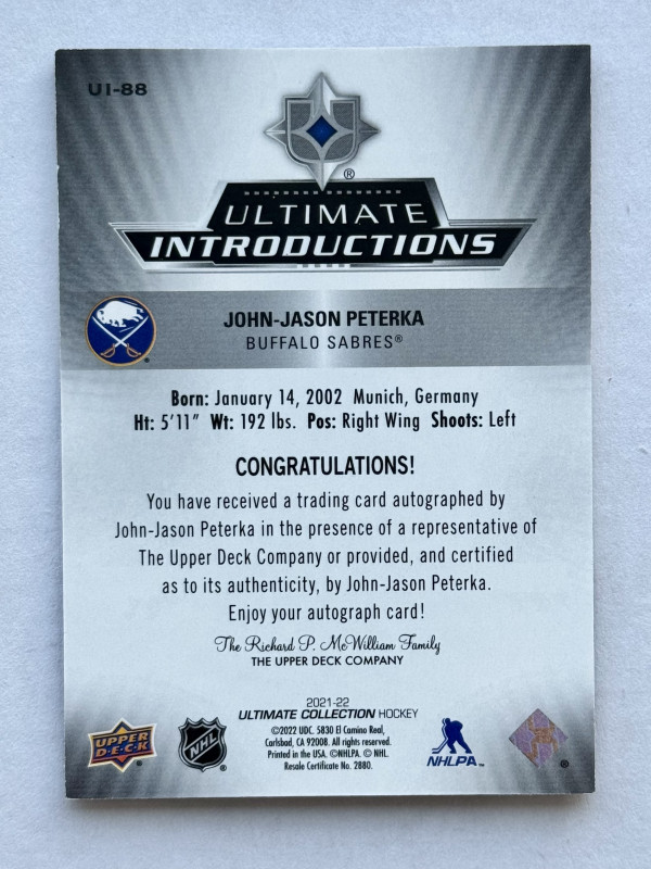 2020-21 Ultimate Introductions - J.J. Peterka /10