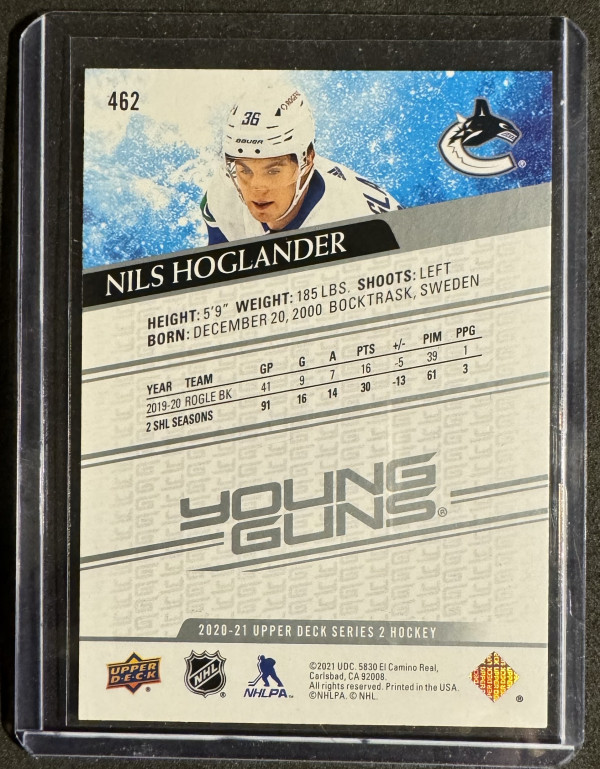 2020-21 Upper Deck 462 Nils Hoglander Young Guns