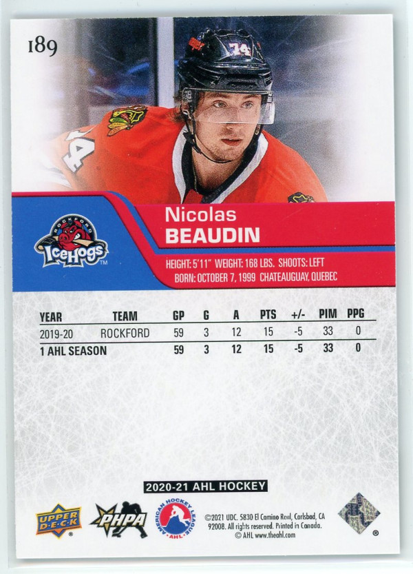 2020-21 Upper Deck AHL #189 Nicolas Beaudin High Gloss 1/10