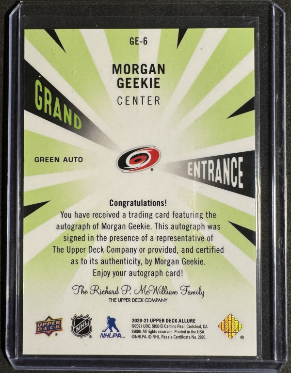 2020-21 Upper Deck Allure GE-9 Morgan Geekie Grand Entrance Auto