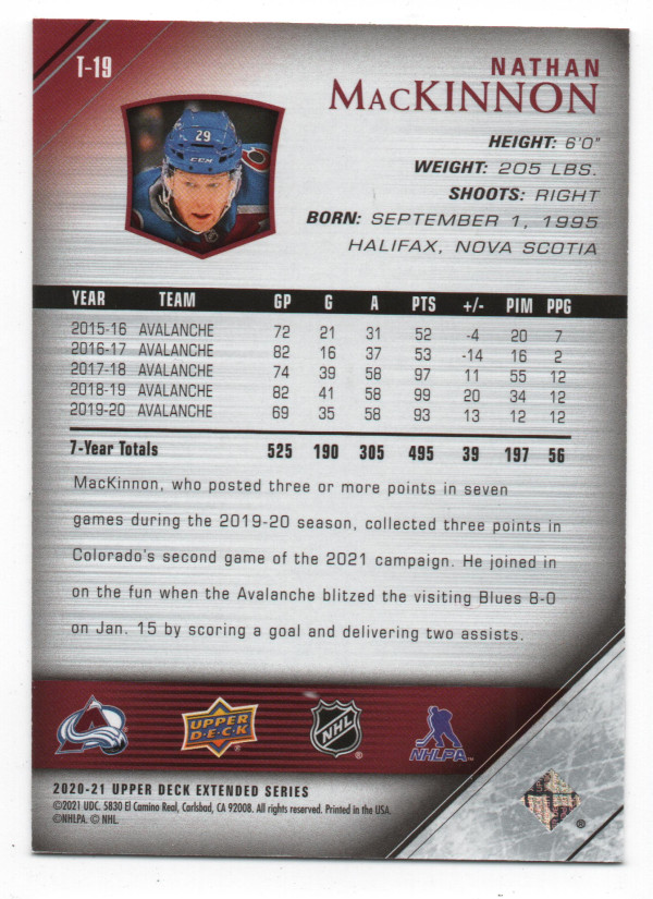 2020-21 Upper Deck Extended Series 05-06 Upper Deck Tribute Electric Ice Achievements #T-19 Nathan MacKinnon