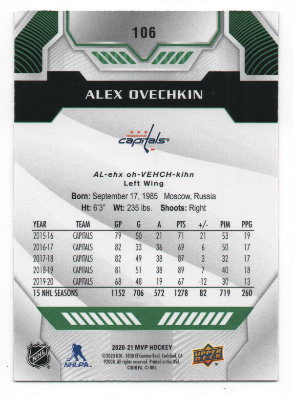 2020-21 Upper Deck MVP ePack Green Script Parallel #106 Alex Ovechkin
