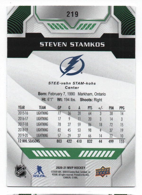 2020-21 Upper Deck MVP ePack Green Script Parallel #219 Steven Stamkos