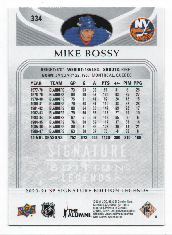 2020-21 Upper Deck SP Signature Edition Legends ePack Silver Script Parallel #334 Mike Bossy