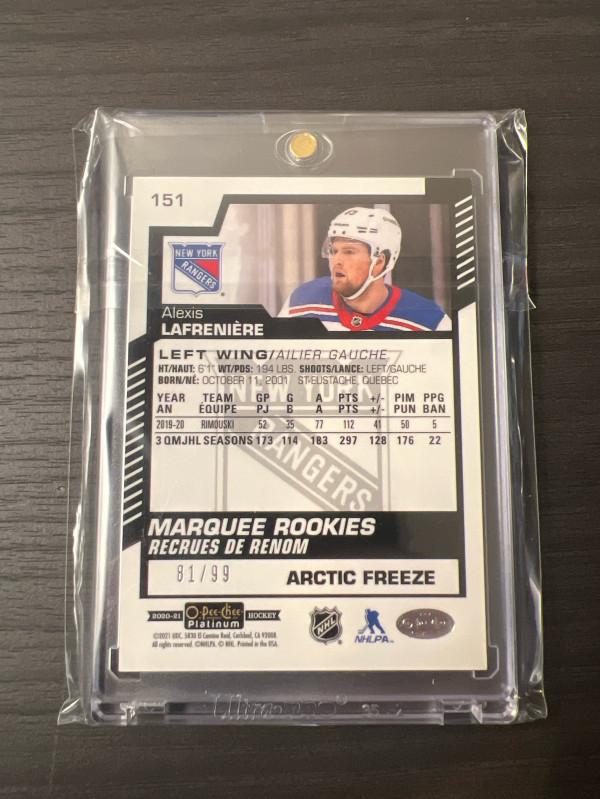 2020 O-Pee-Chee Platinum Alexis Lafreniere Arctic Freeze Rookie # 81/99