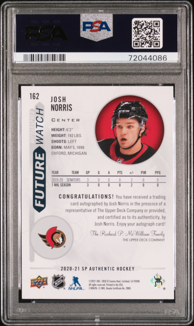 2020 Sp Authentic Josh Norris Autograph