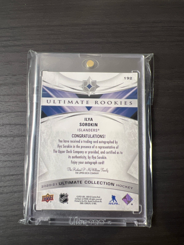 2020 Ultimate Collection Ilya Sorokin Rookie Auto # 92/99