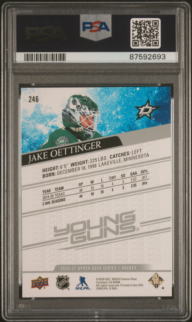 2020 Upper Deck Jake Oettinger Young Guns PSA 10 Gem Mint