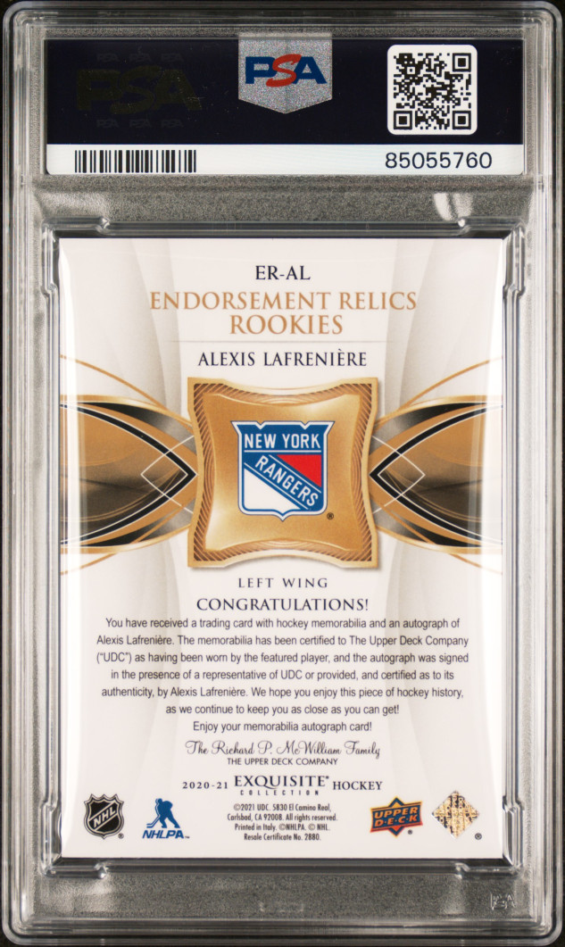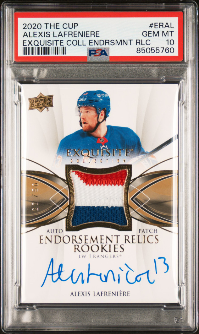 2020 Upper Deck The Cup Exquisite Collection Endorsements Relics Alexis Lafreniere Exquisite Coll Endrsmnt Rlc