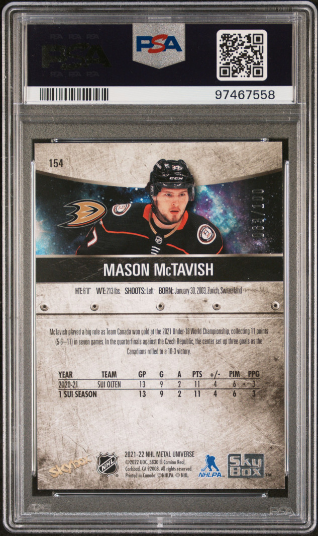 2021-2022 Skybox Metal Universe Mason Mctavish Precious Metal Gems-Red PSA 8