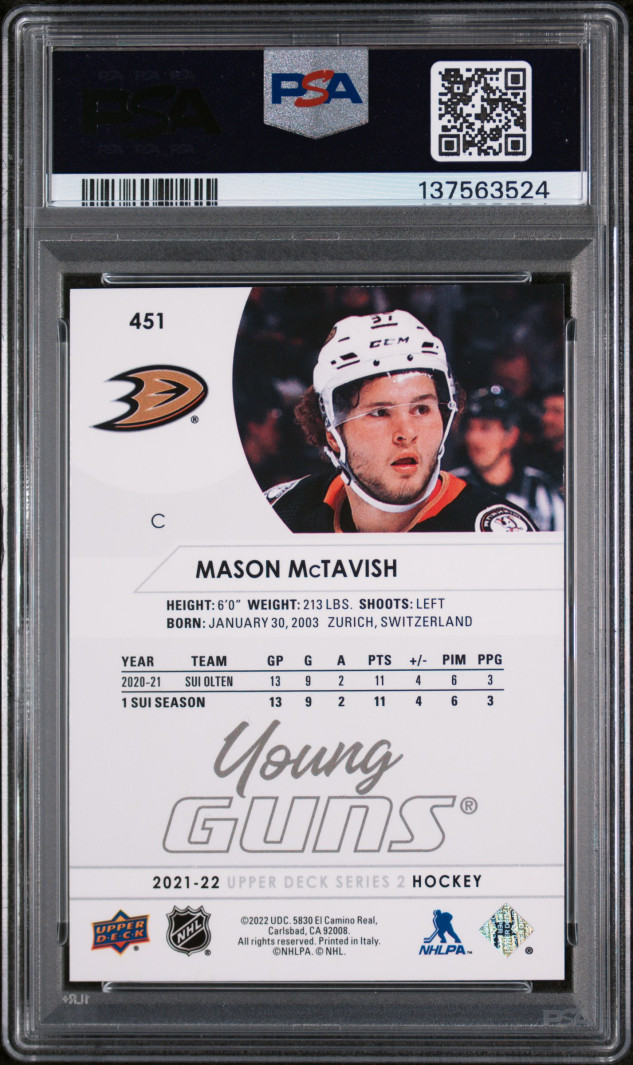 2021-2022 Upper Deck Mason Mctavish Young Guns PSA 9 Mint