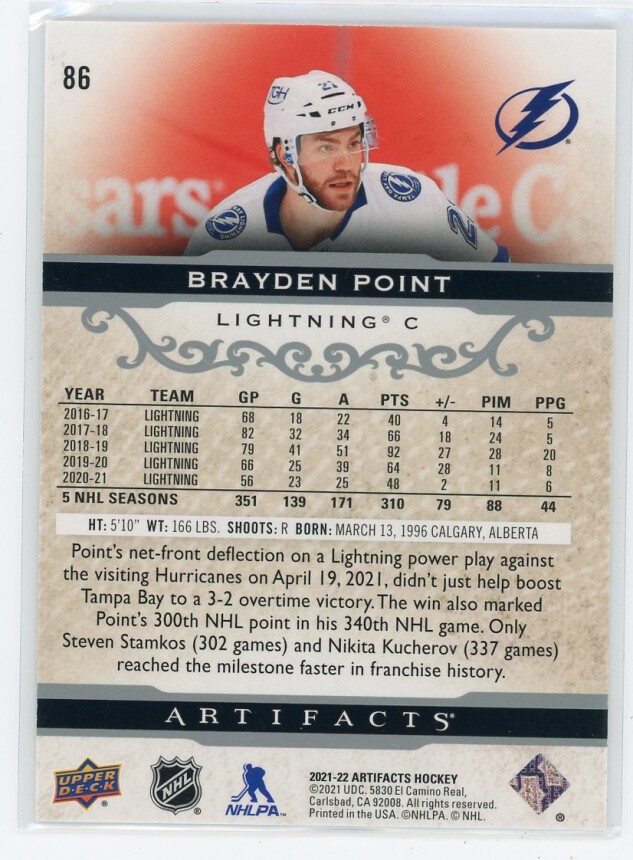 2021-22 Artifacts #86 Brayden Point Silver Spectrum /299