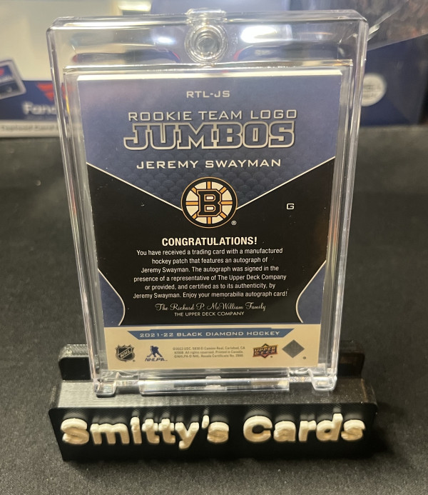 2021-22 Black Diamond Jeremy Swayman Rookie Team Logo Patch auto /99