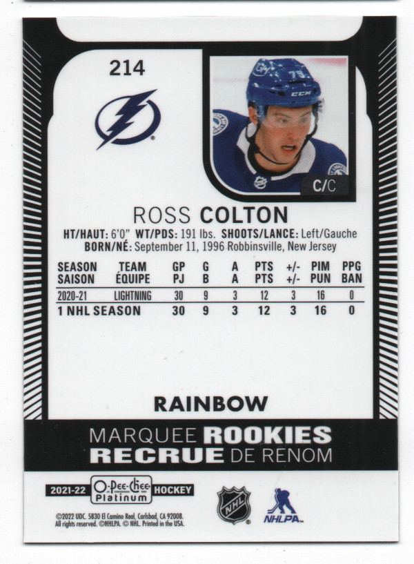 2021-22 O-Pee-Chee Platinum Rainbow Parallel #214 Ross Colton RC
