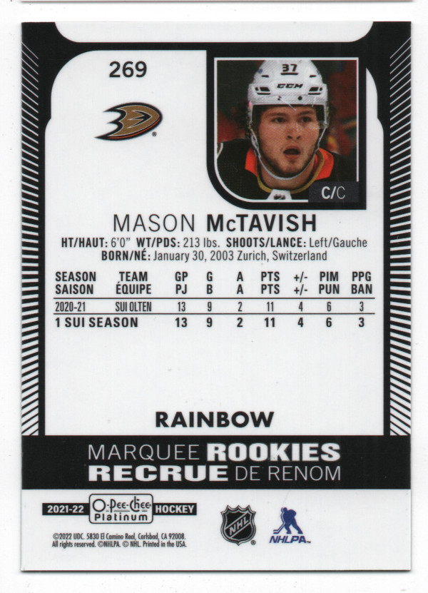 2021-22 O-Pee-Chee Platinum Rainbow Parallel #269 Mason McTavish RC