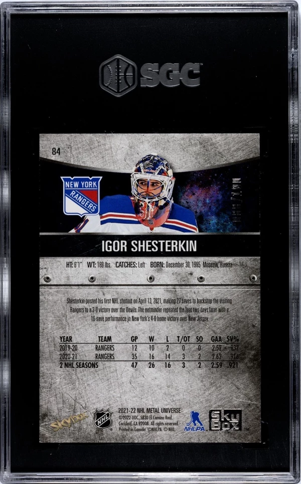 2021-22 Skybox Metal Universe #84 Igor Shesterkin PMG Red /100 SGC 9 Mint