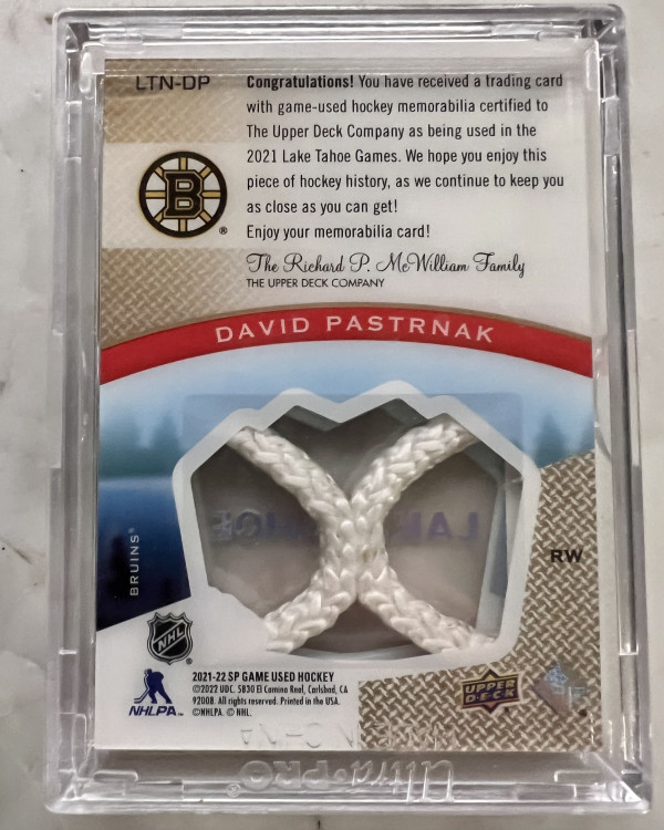 2021-22 SP Game Used David Pastrnak Lake Tahoe Games Game-Used Net Cord /5