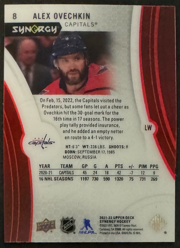 2021-22 Synergy Alexander Ovechkin #8