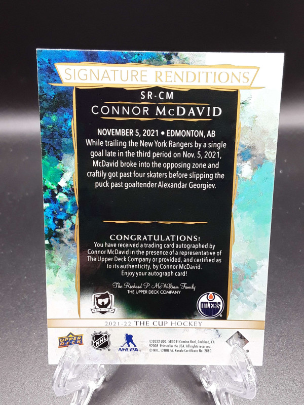 2021-22 The Cup Connor McDavid Signature Renditions Auto #SR-C