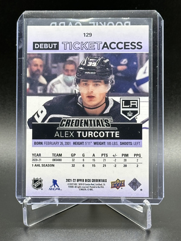 2021-22 UD Credentials Alex Turcotte Debut Ticket Access Purple (05/10) Rookie Card