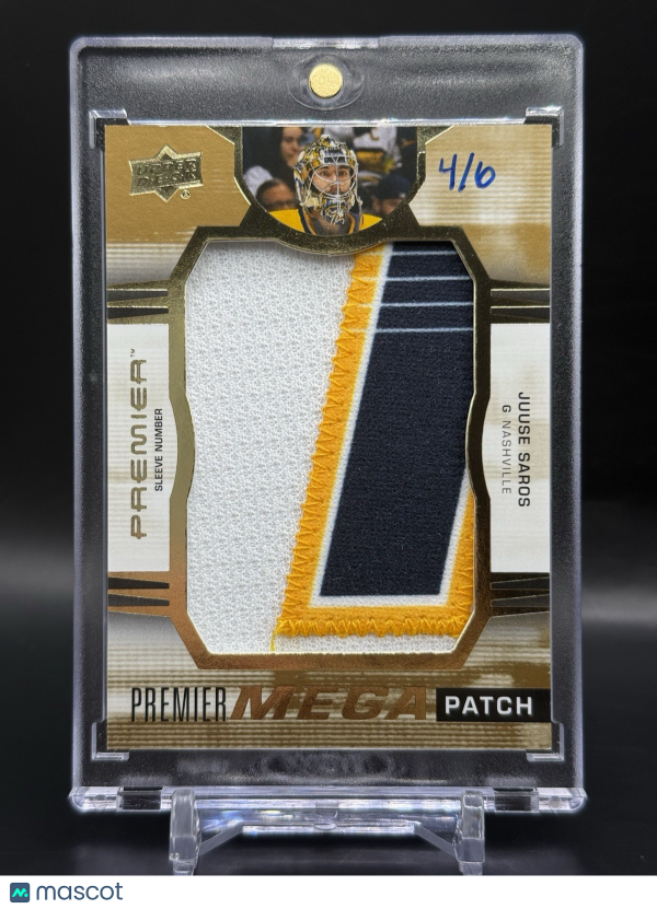 2021-22 UD Premier Juuse Saros Mega Patch Sleeve Number 4/6 Game Used