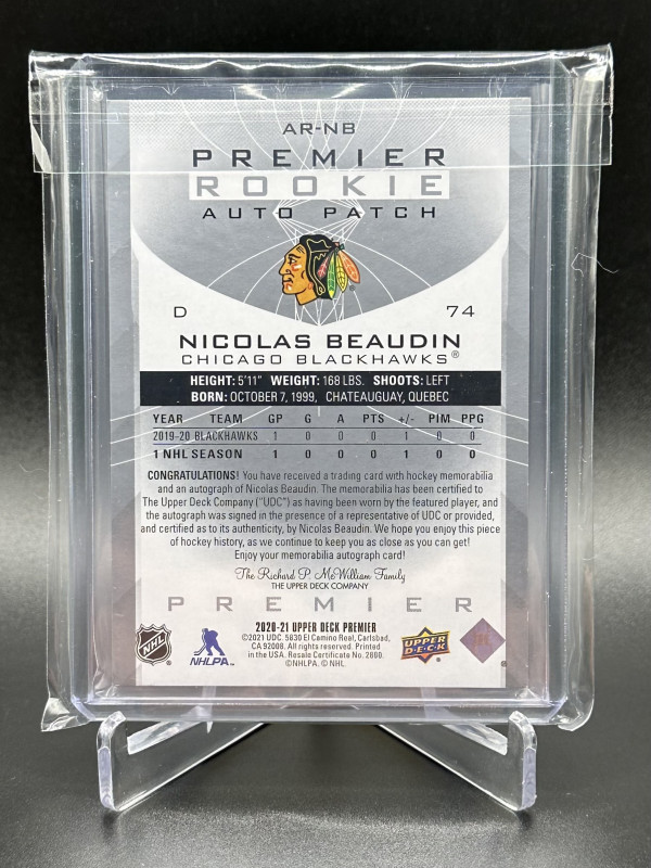 2021-22 UD Premier Nicolas Beaudin Rookie Auto Patch (138/249)