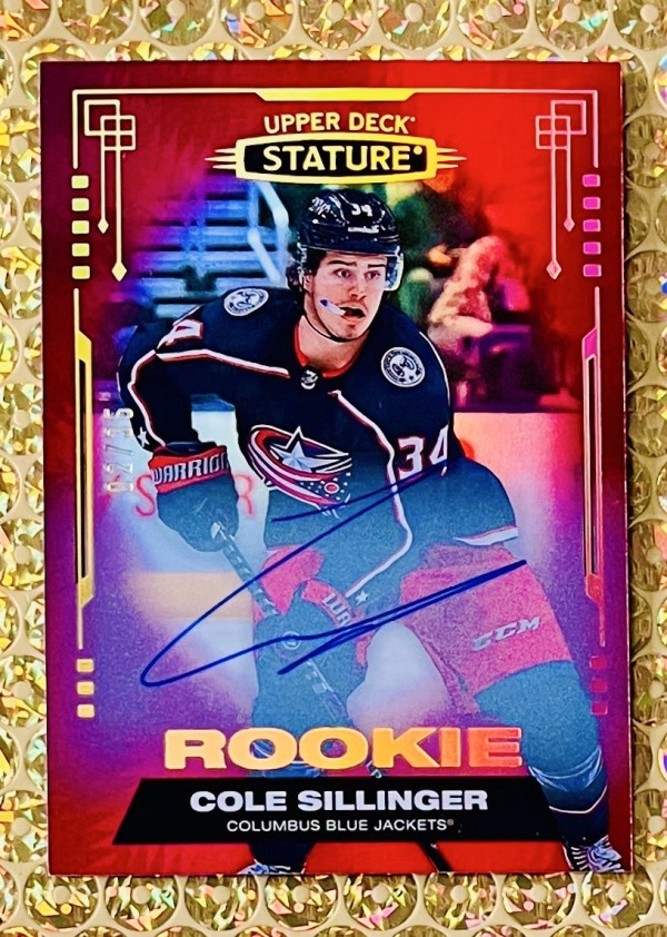 2021-22 UD Stature #198 Cole Sillinger On-Card Auto RC Ruby Red /35