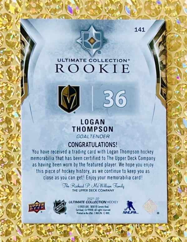 2021-22 UD Ultimate Collection #141 Logan Thompson Ultimate Rookie Patch /699 RC