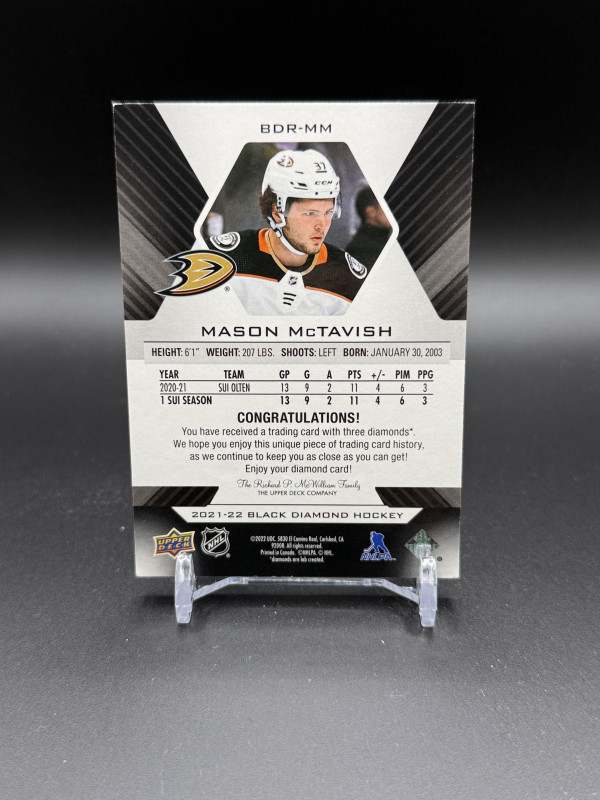 2021-22 Upper Deck Black Diamond Rookie Relic Triple Mason McTavish 19/99
