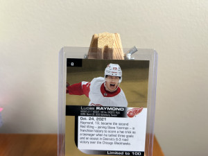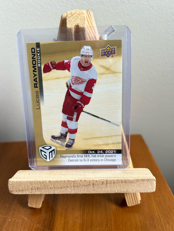 2021-22 Upper Deck Game Dated Moments - [Base] - Gold #8 - Rookie - (Oct. 24, 2021) - Lucas Raymond's First NHL Hat Trick Powers Detroit To 6-3 Victory /100