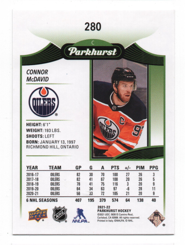 2021-22 Upper Deck Parkhurst ePack Gold Lite FX Parallel #280 Connor McDavid