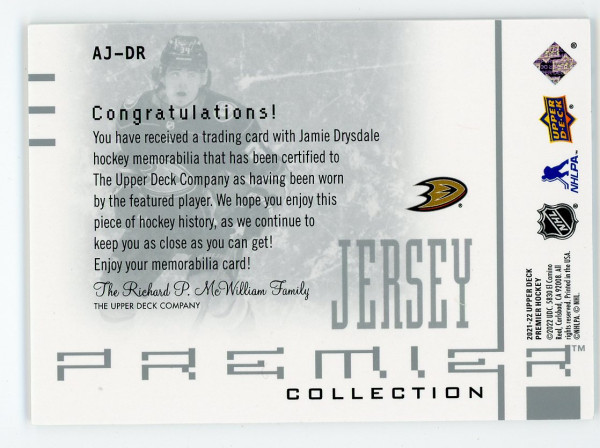 2021-22 Upper Deck Premier Jamie Drysdale 20th Anniversary Jersey /300