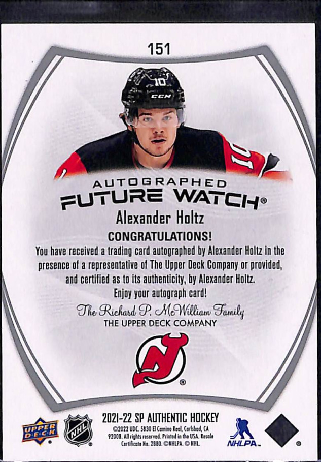 You are purchasing a 2021-22 Upper Deck SP Authentic Alexander Holtz #151 470/999. You will receive the exact card in the photographs. Thank you for looking.