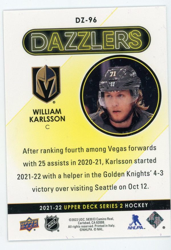 2021-22 Upper Deck William Karlsson Dazzlers Purple