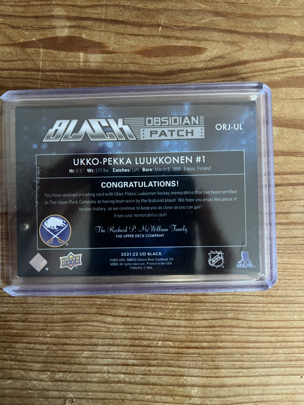 2021 SPx UD Black Obsidian Jersey Gold /35 Ukko-Pekka Luukkonen Rookie Patch RC