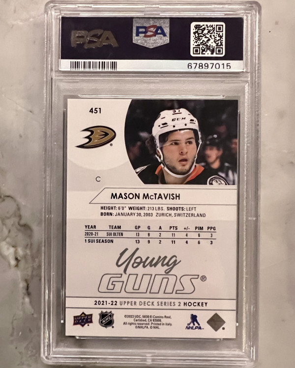2021 Upper Deck Mason McTavish Young Guns #451 PSA 10