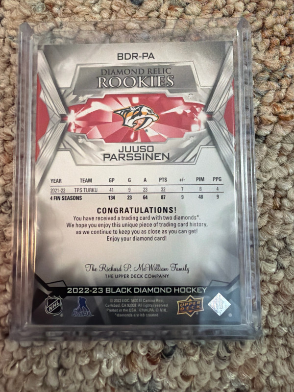 2022-23 Black Diamond Juuso Parssinen Diamond Relic Rookies Double Diamond 24/49