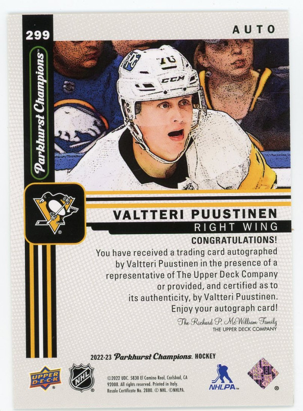 $5 shipping via bubble mailer with tracking in the USA $15 shipping to Canada **no additional charges no matter how many cards you buy*** Cards will ship packaged safe and secure in top holders or one touch holders. Always interested in trading for similar Sabres or Bills cards I could use for my personal collection