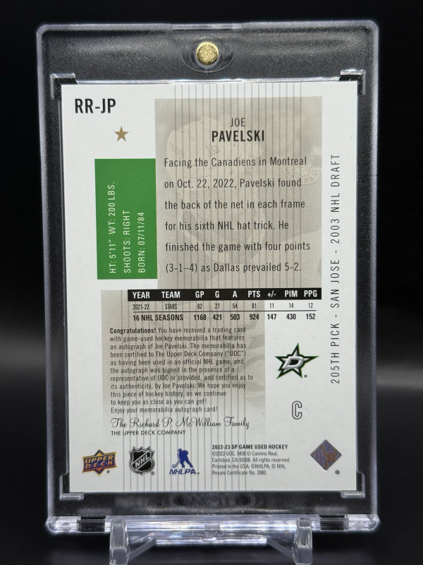 You are purchasing a 2022-23 SP Joe Pavelski Patch Short Print. You will receive the exact item in the photographs. Thank you for looking.
