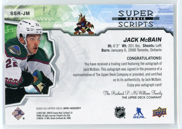 2022-23 SPx #SSR-JM Jack McBain Rookie Superscripts