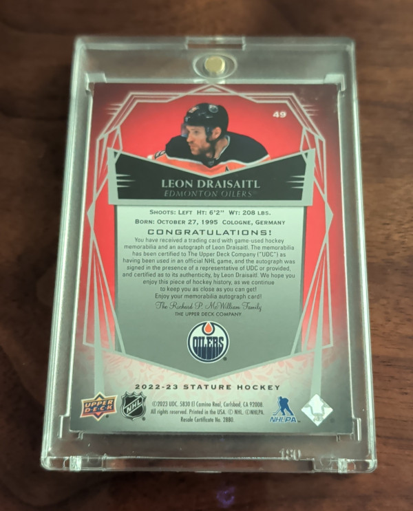 2022-23 Stature Leon Draisaitl Patch Auto /3.