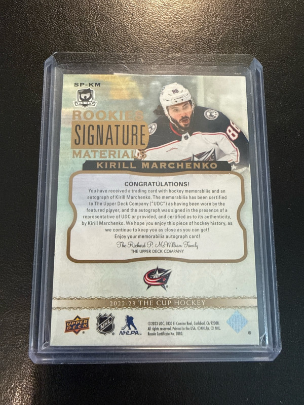 2022-23 The Cup Rookies Signature Materials Kirill Marchenko /99