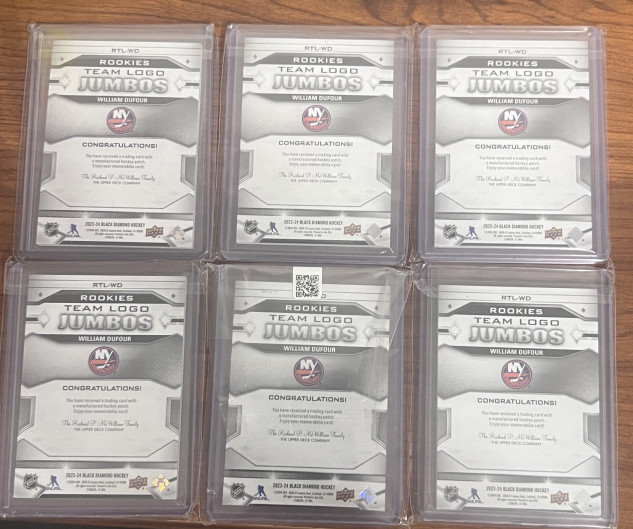 2022-23 UD Black Diamond Team Retro Logo Jumbos William Dufour NY Islanders RTL-WD 6-card set