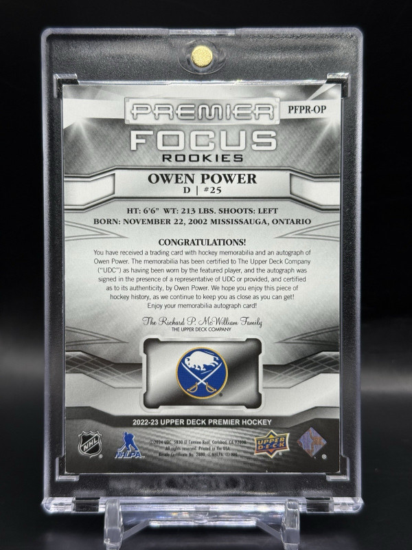 You are purchasing a 2022-23 SPx Owen Power Patch Rookie. You will receive the exact item in the photographs. Thank you for looking.