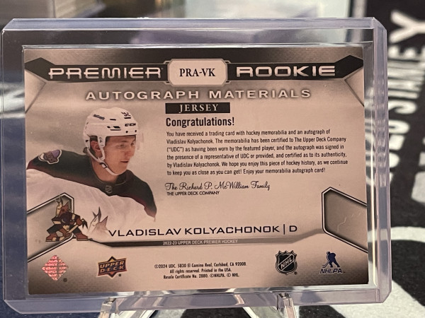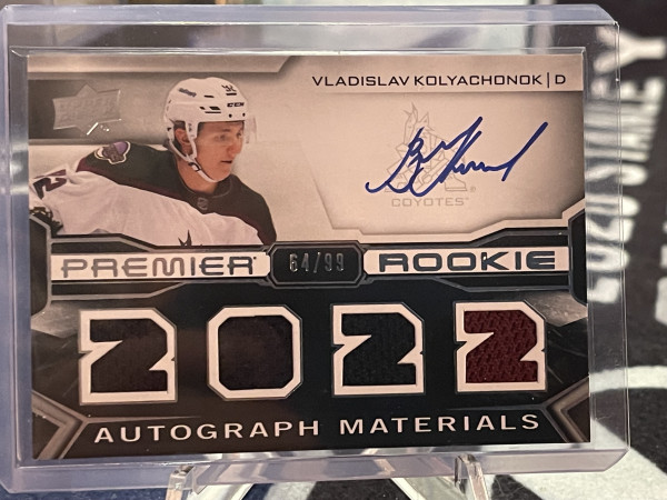 2022-23 UD Premier Rookie Auto Materials Jersey Vladislav Kolyachonok /99