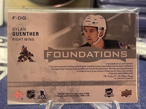 2022-23 UD The Cup Foundations Quad Jersey Dylan Guenther /99 #F-DG Arizona