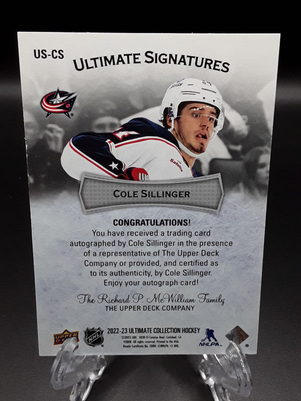 2022-23 Ultimate Collection Cole Sillinger Ultimate Signatures Auto #US-CS